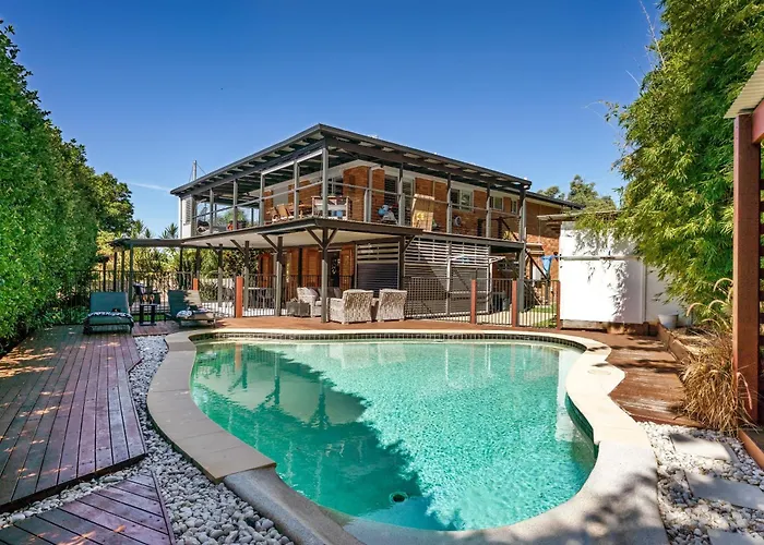 Staying at the 3-bedroom Battery Hill Pet-Friendly Poolside Paradise Caloundra villa, guests can easily reach Currimundi Lake Conservation Park, located approximately a 25-minute walk away.